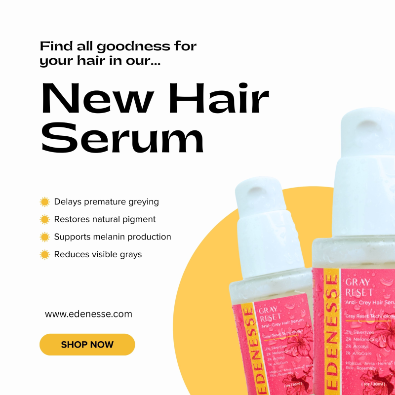 It Helps Reduce the Appearance of Grey Hair in 8–10 Weeks. Powered by Edenesse’s Gray Reset, an advanced Biomimetic Pigment-Support Complex, this serum is designed to support the hair’s natural melanin production process at the scalp level. By addressing factors like oxidative stress and overall follicle health, it helps reduce the appearance of premature greying over time. With consistent use, hair appears healthier, stronger, and more naturally vibrant. <This message was edited>
